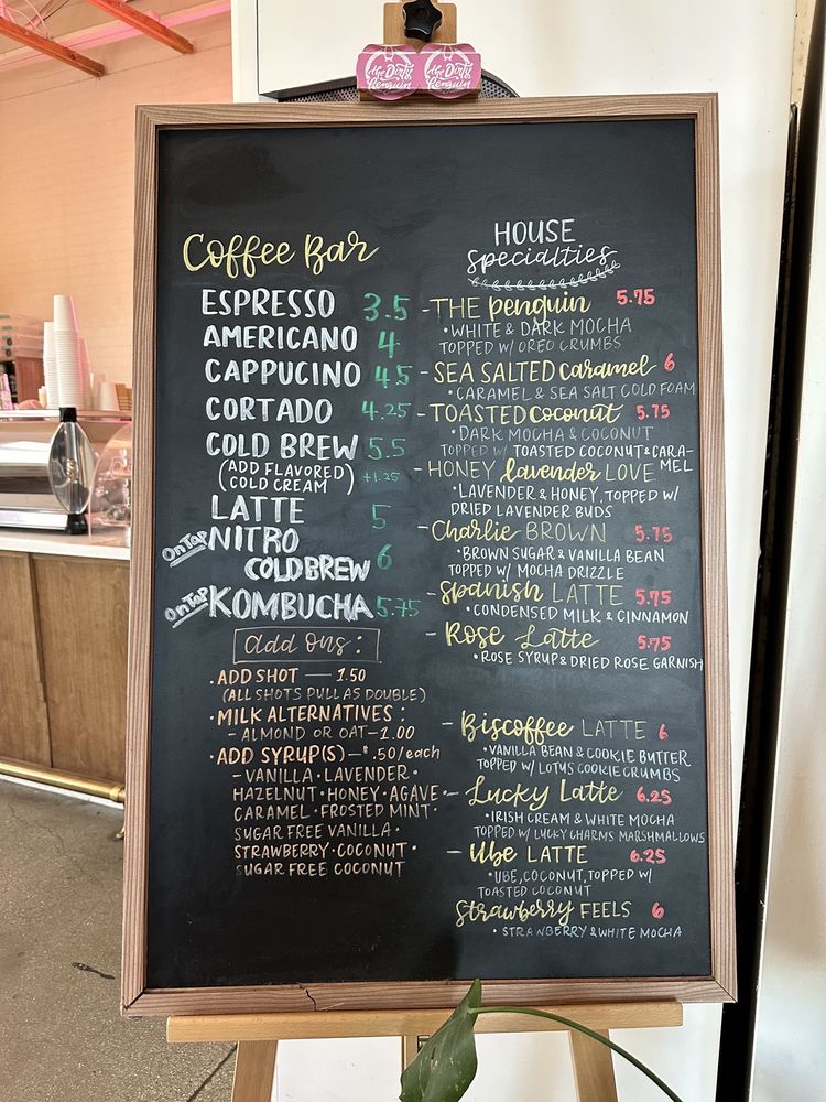 Introducing The Dirty Penguin, a trendy and hip breakfast and brunch spot located in Chino Hills, CA. With offerings like Spanish lattes, avocado toast, and unique coffee choices like the Charlie Brown coffee, this place is a must-visit for coffee lovers. Customers have praised the friendly service, relaxing ambiance, and creative drink options. The Biscoffee, a fan favorite, is a must-try with its unique blend of flavors. Despite some mixed reviews on the food options, the overall vibe and quality of drinks make this a popular spot. With free Wi-Fi, gender-neutral restrooms, and outdoor seating, The Dirty Penguin offers a comfortable and inclusive environment for guests. Whether you're looking to catch up with friends over lattes or just enjoy a cozy morning solo, The Dirty Penguin has something for everyone.